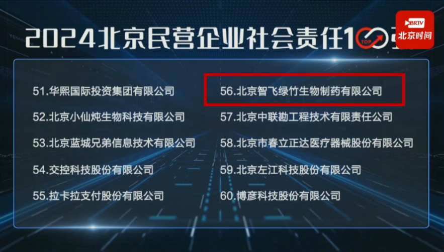 喜報(bào)!北京智飛綠竹入選2024北京民營(yíng)企業(yè)科技創(chuàng)新百?gòu)?qiáng)和社會(huì)責(zé)任百?gòu)?qiáng)榜單